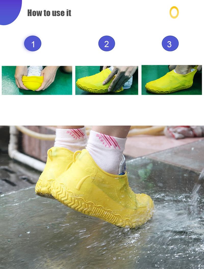 硅膠鞋套防水的原理,就在于它采用的硅膠材料,是一種非晶態的、高活性的吸附物質,能很好地阻止水的滲透,從而起到防水防潮的作用。該產品底部及兩側根部采用波浪線條紋設計,該結構具有防滑功能,在雨雪天氣,穿著硅膠鞋套行走在濕滑的路面上,可起到防止腳底打滑的作用。