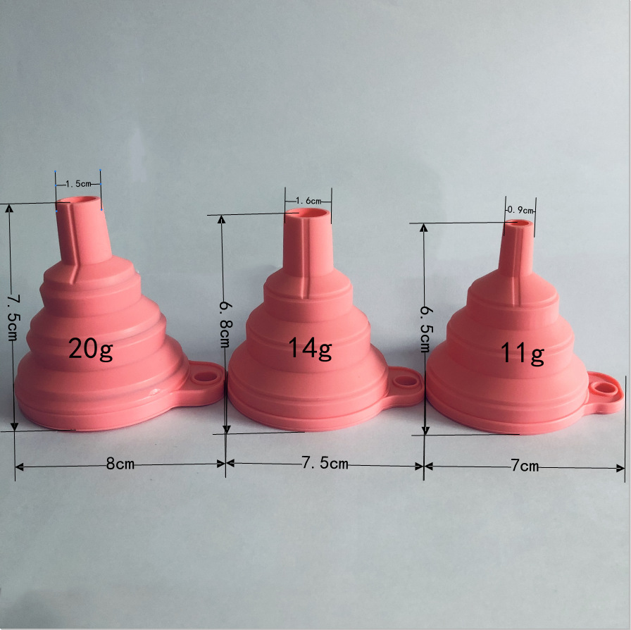 不管是不銹鋼漏斗還是塑料漏斗,都存在一個同樣的問題,不經常使用的到,占據空間較大,難收拾,且不方便攜帶,現有出現一種可折疊的硅膠漏斗,它采取食品級硅膠材質,不含毒性,無色無味,硅膠柔軟設計可伸縮折疊,精致小巧,方便攜帶和收納,折疊后可減少占用空間。