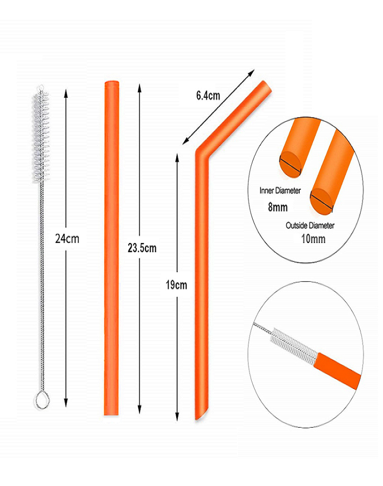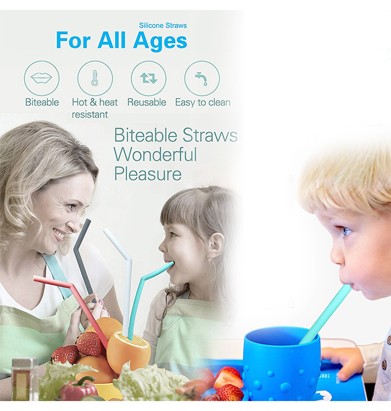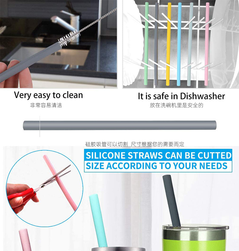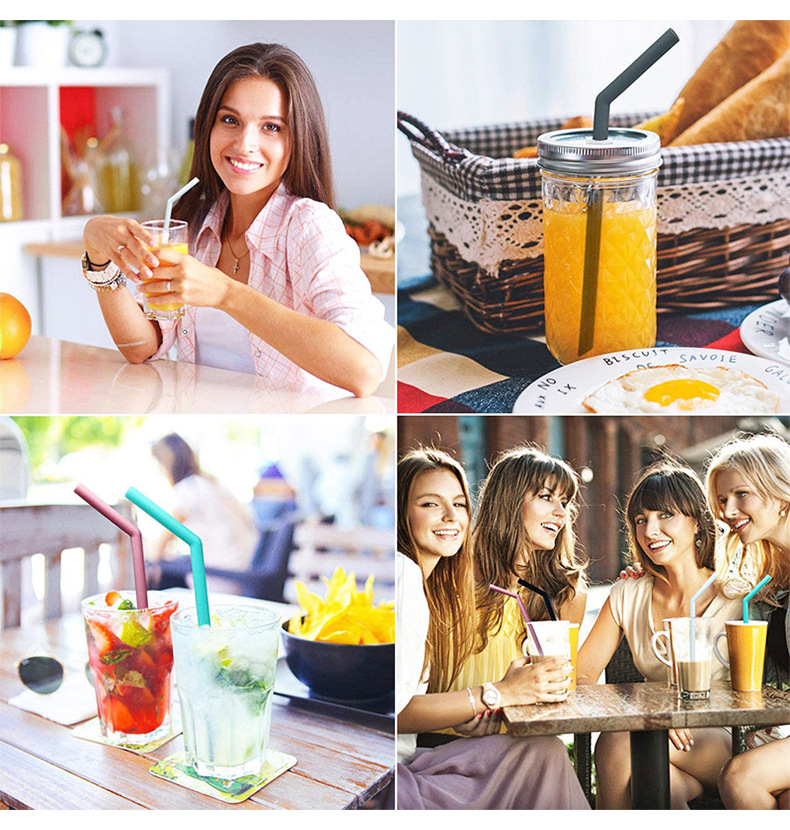 批發價格環保 100% 食品級五顏六色 BPA 免費酒吧飲用可重復使用的食品級硅膠吸管
