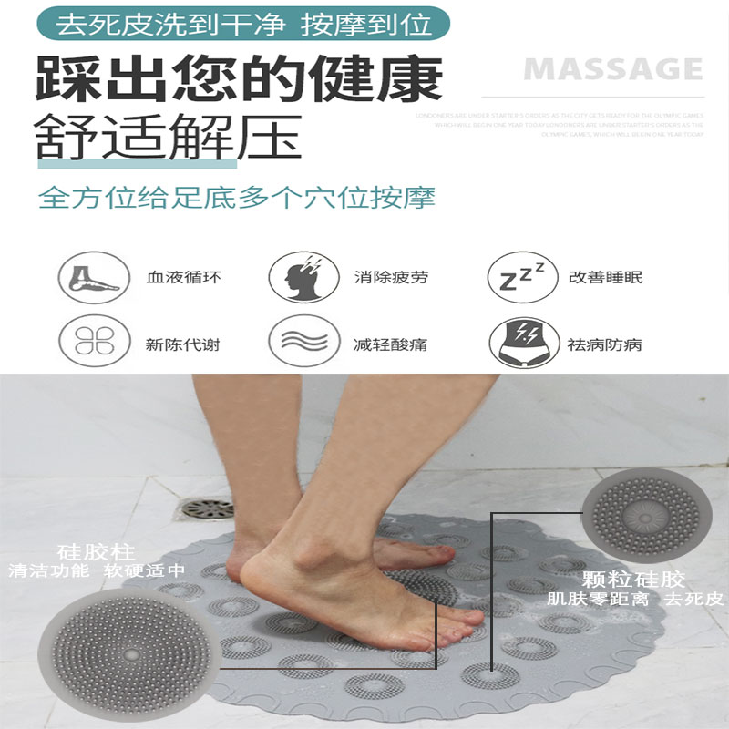 加長版圓形淋浴墊浴室防滑墊洗澡按摩腳地墊家用衛(wèi)生間硅膠防摔墊