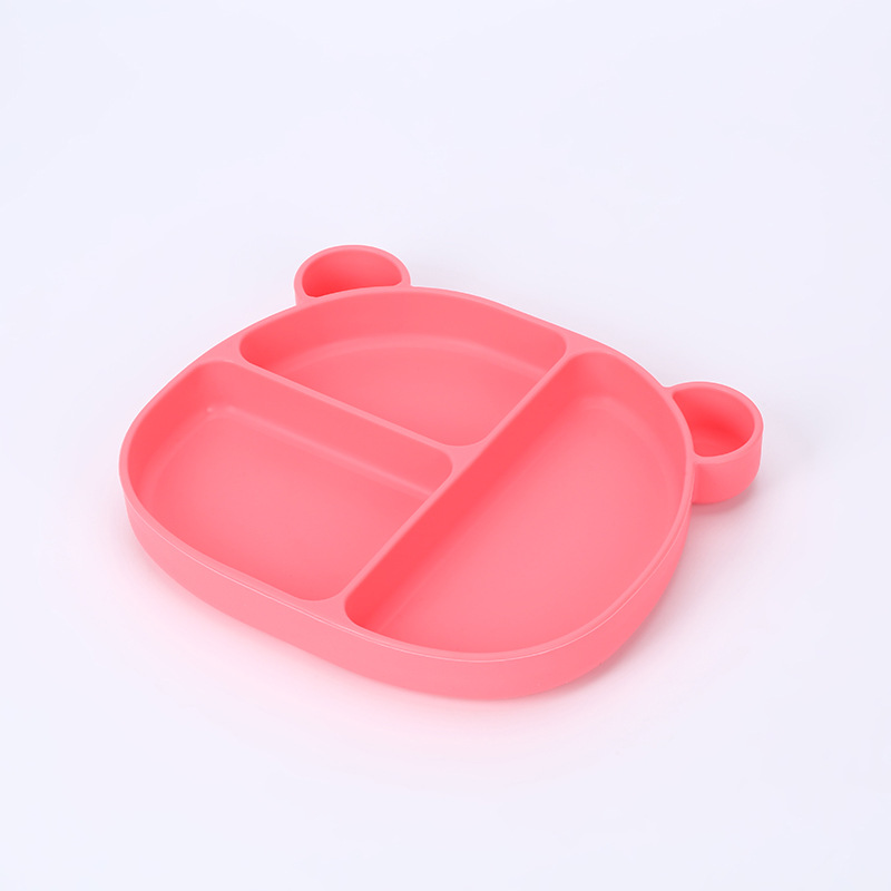 2021新款創意小熊兒童硅膠餐盤寶寶防摔防滑分餐硅膠輔食吸盤碗